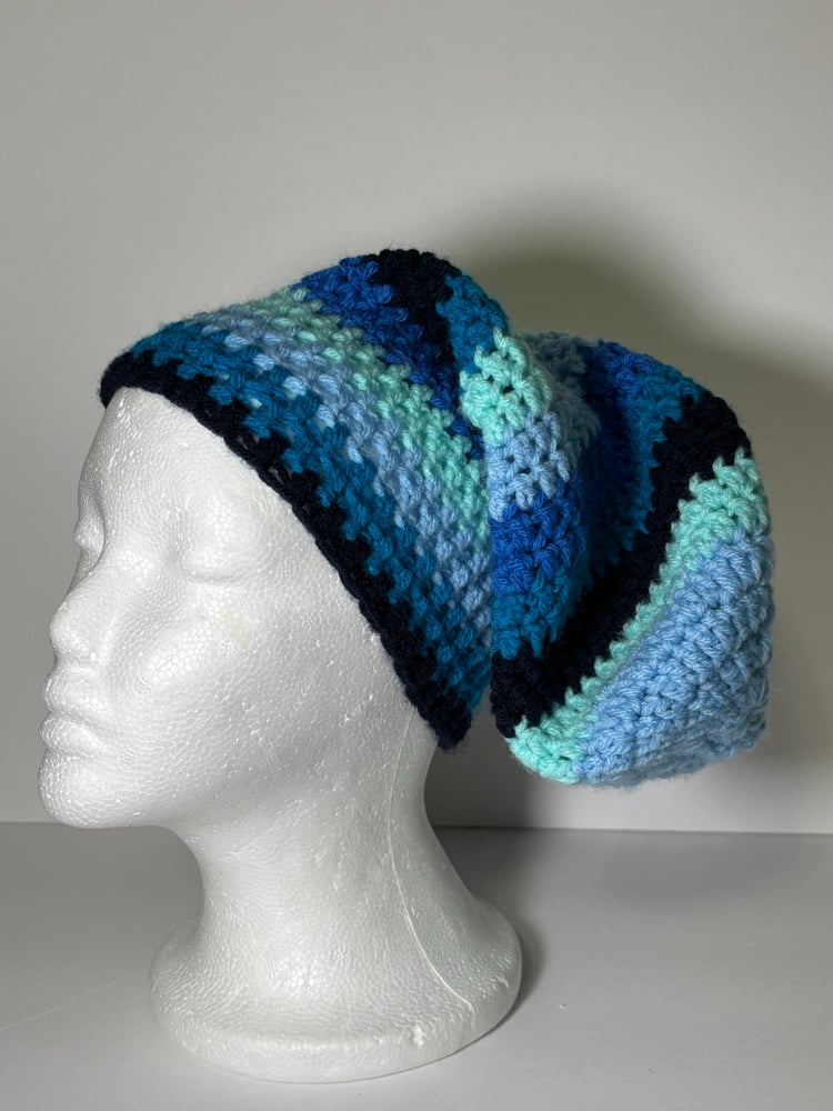 Dive into calm and style with this hand-crocheted hat, featuring a beautiful blend of blue tones from deep navy to soft sky blue. Each shade transitions seamlessly, creating a soothing, ocean-inspired gradient that’s perfect for adding a pop of color to any outfit. Soft, cozy, and carefully crafted, this hat keeps you warm while making a stylish statement. Ideal for casual wear, outdoor adventures, or gifting to someone who loves unique handmade pieces.